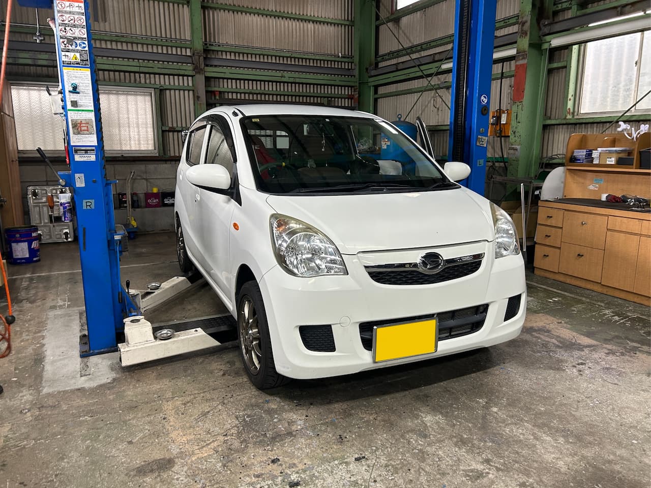そこで、私の愛車ダイハツ ミラ L275Sを、安全に、そしてアツく走らせるために、モリモリ塾でブレーキ廻りの重要整備を実施しました!