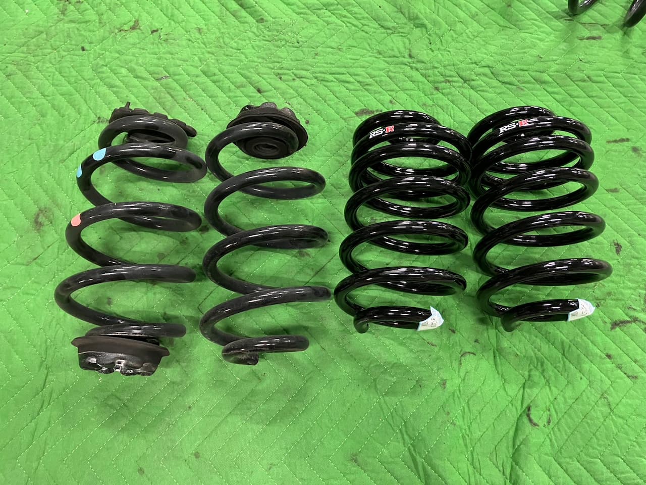 ご依頼いただいたのは、人気のローダウンサスペンション**RSR(RS-R)**への交換作業!車高を下げることで、見た目もグッと引き締まり、走行性能もアップするカスタムです。