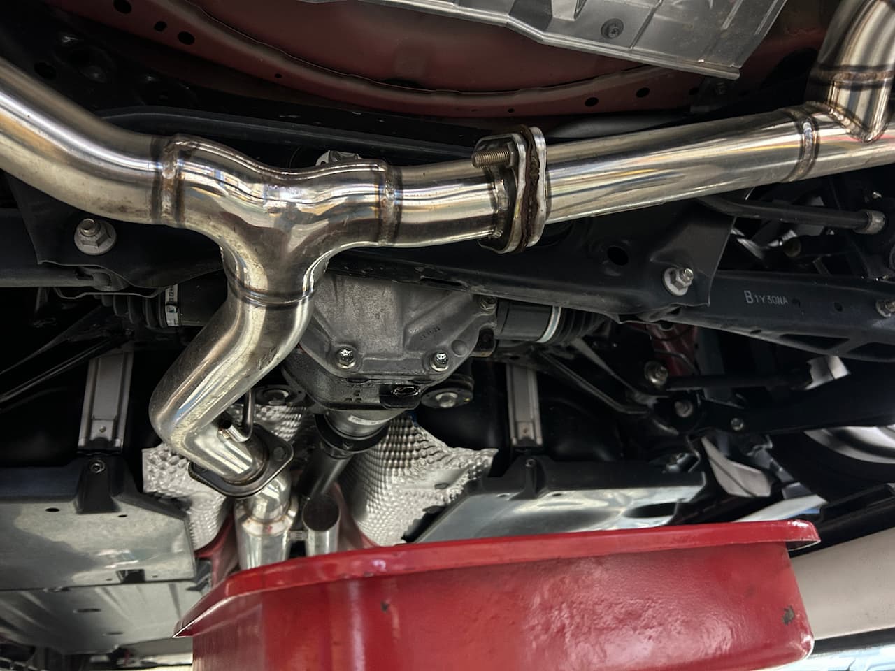 ミッションやデフのオイルは専用ポンプを使って注入するのですが、移し替えの工程で、その「硬さ」ゆえにデフオイルを少しこぼしてしまうというハプニングが……。