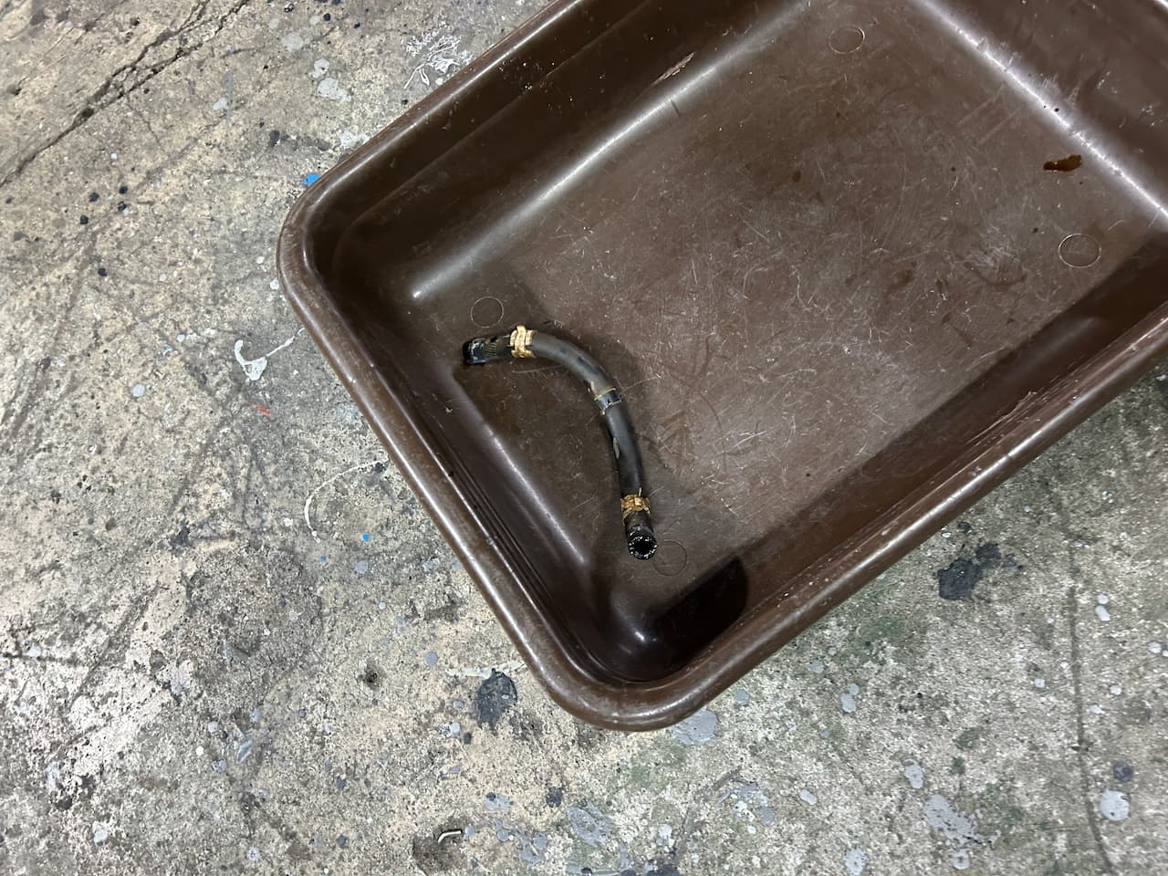 今回もホースの繋ぎ目(カシメ部分やクリップ付近)からじわじわとATF(オートマフルード)が滲み出していました。放置すると油圧が下がり、最悪の場合オートマが滑って走行不能になる恐れがあるため、早めの交換が正解です。
