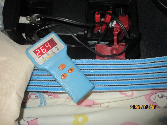 補機バッテリー交換 ハイブリッド車特有のチェックポイント。テスターで診断したところ、劣化が進んでいたため、トラブル未然防止のために交換いたしました。
