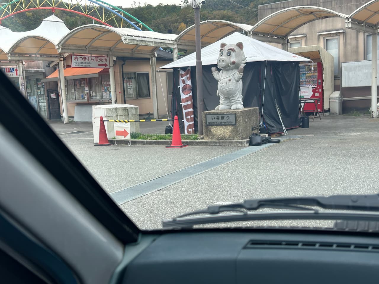 ■ 猪名川渓谷ラインを軽快に 今回のルートは、お気に入りの**「猪名川渓谷ライン」。 ワインディングロードをシティターボで駆け抜けるのは、まさに至福の時間です。 途中、「道の駅いながわ」でちょっと一休み。マスコットキャラクターの「いなぼう」**に挨拶をして、英気を養います。
